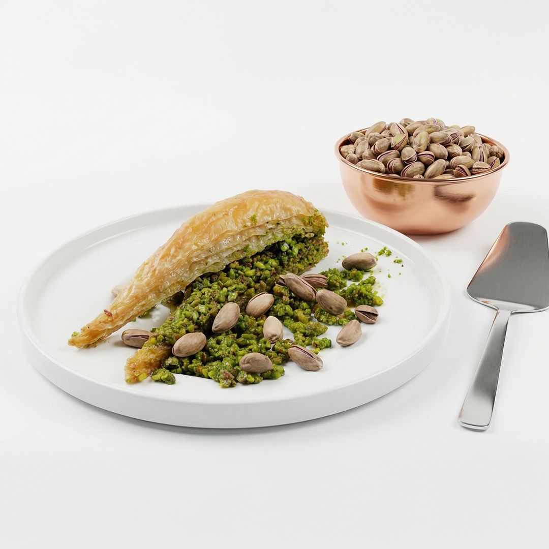 Gaziantep’ten gelen havuç dilim baklavamız; iri fıstığı, kat kat çıtırlığı ve tam kararında şerbetiyle Antep ustalığını ilk lokmada hissettirir.